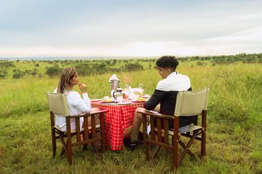 After a magical hour’s flight, your balloon safari concludes with a glass of champagne at the landing site, and it gets even better. A short game drive leads to a beautifully prepared breakfast table under the shade of a giant acacia tree, where you can enjoy a delicious bush feast and relive your unforgettable morning.