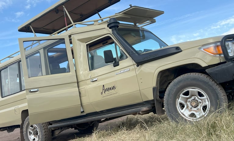 At Amani Expeditions we believe in value for money. Every guest would like to have the most reliable and comfortable vehicles on safari. In response to the clients’ needs, we have a very strict vehicle replacement policy that ensures a young fleet at all times. We have a fleet of well-maintained motor vehicles, predominantly 4-wheel drives. Our safari vehicles are specifically converted for maximum space and comfort. All of them have hatched roof and sliding windows to facilitate good viewing and convenient photography during game drives and sight seeing, fridge and sockets for charging electronic devices.